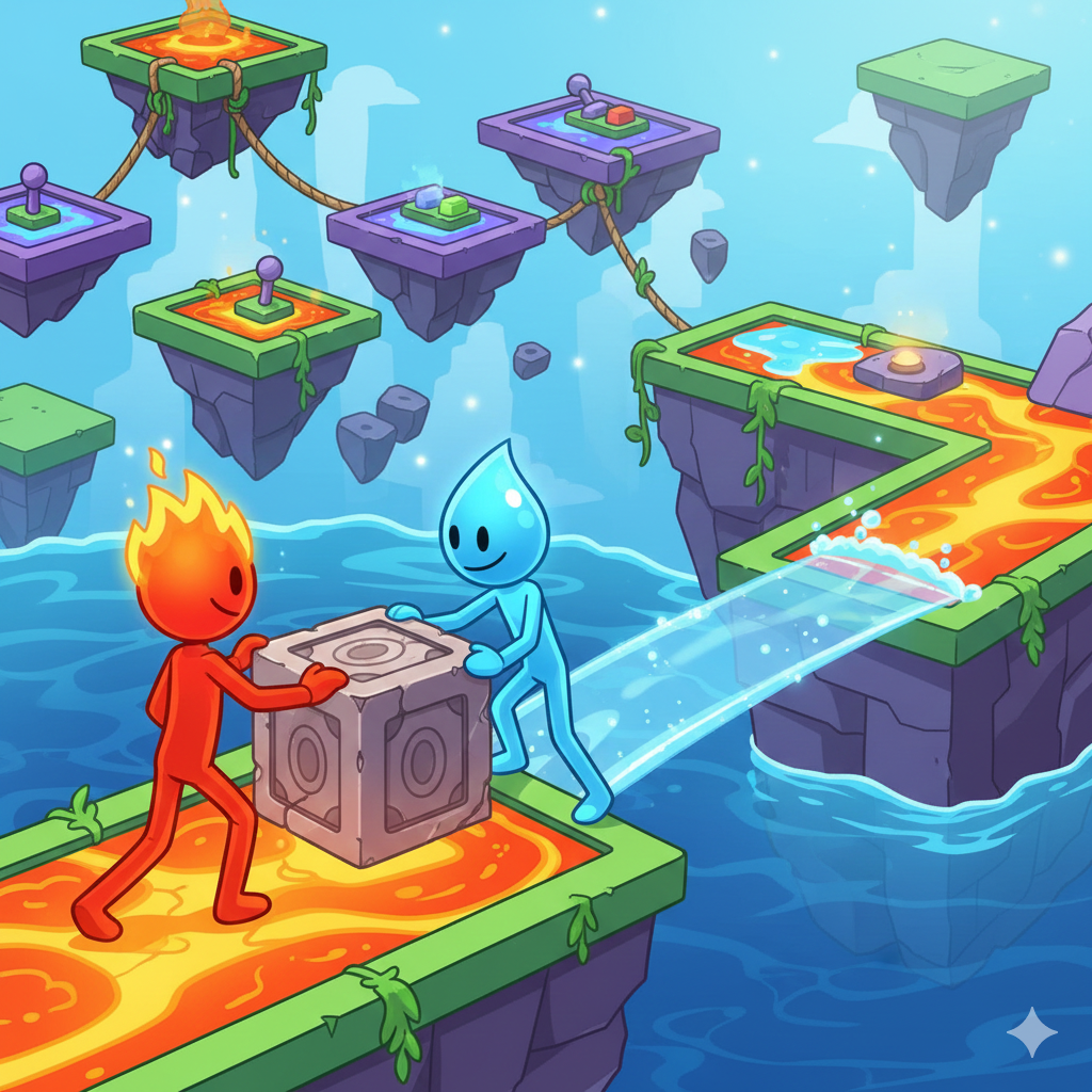 Work together and think smart in Fire and Water Stickman, an HTML5 puzzle adventure game built around teamwork and clever problem-solving. In this game, players control two stickman characters, each with unique abilities that must be used at the right time to move f...